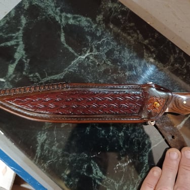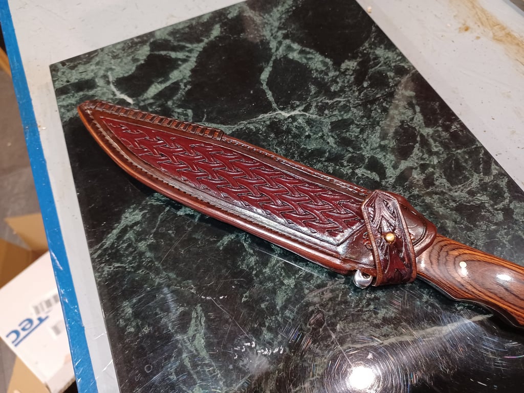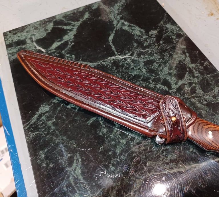 Messerscheide mit Doppel Cordovan Flechtung und Punzierung