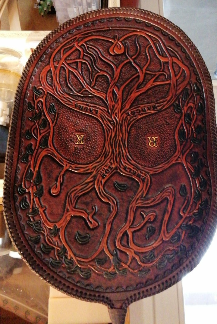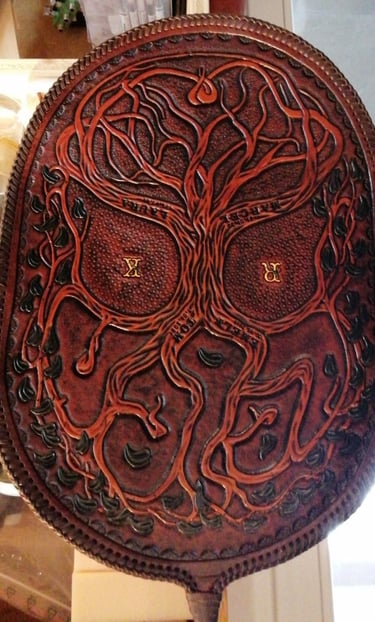 Das Bild ist von einer aufwendigen Doppel Cordovan Flechtung (auch Double Loop genannt) umrahmt, die dem Werk einen hochwertiges, handwerkliches Aussehen verleiht. Eine Kombination aus feiner Handarbeit und eindrucksvoller Symbolik.