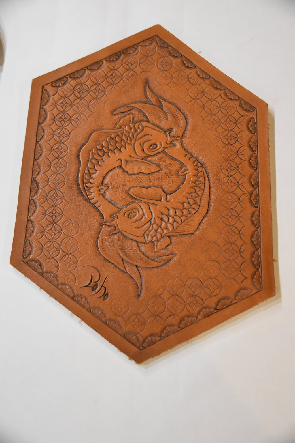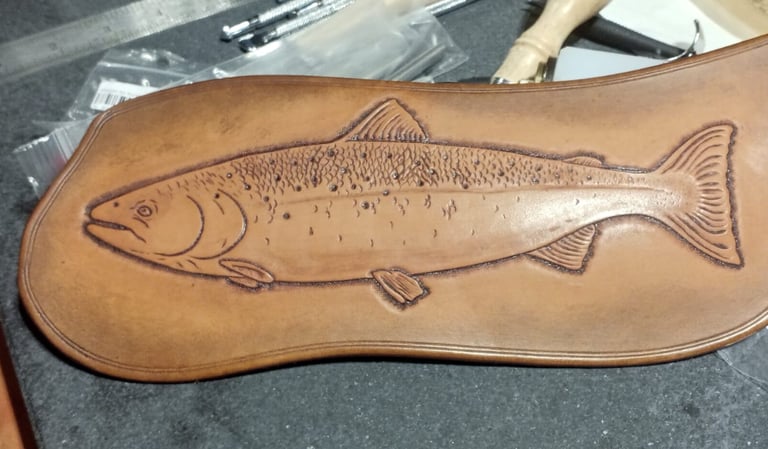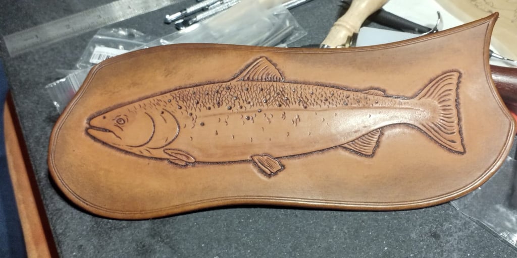 Wurde aus Spaß an der Arbeit und als Rätsel für einen ehemaligen Arbeitskollegen gefertigt der gerne und oft Angeln ging. Erstaunlicherweise erkannte er den Fisch sofort anhand seiner Punkte und Seitenstreifen.