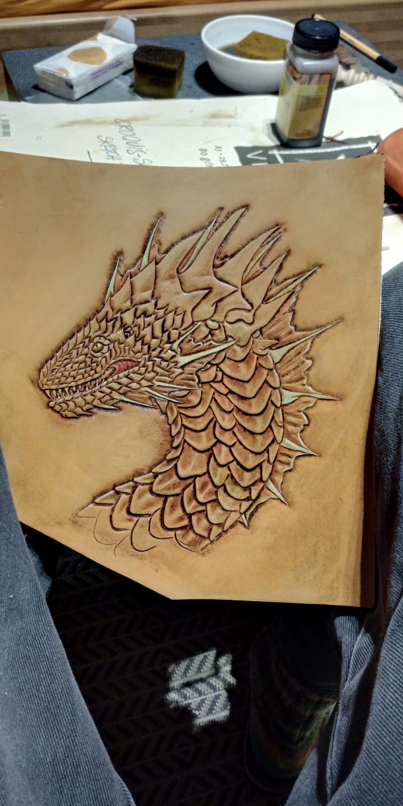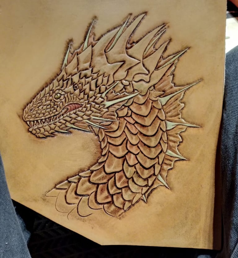Mein erster Drache auf Leder