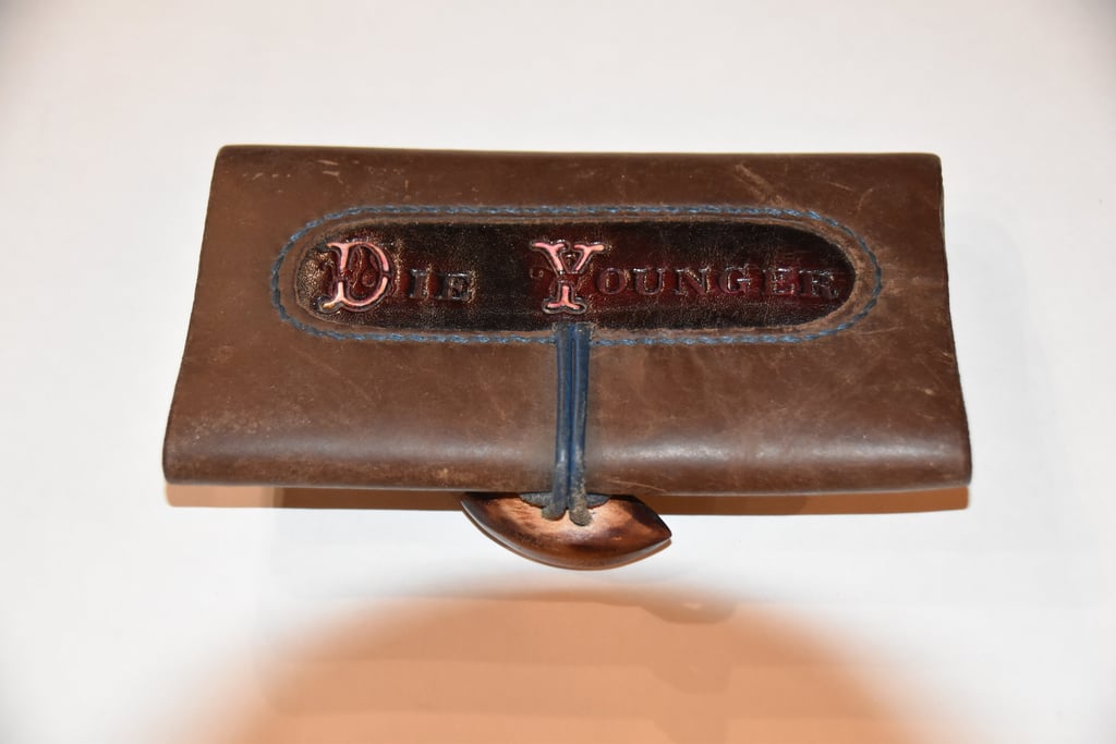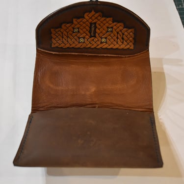 Nichts besonders, einer meiner alten Tabakbeutel. Aufgrund der Tatsache, dass ich nicht mehr Rauche wurde mein treuer Begleiter auch auf den Friedhof geschoben. Er hat eine Naturkautschuk Beschichtung von Innern um den Tabak vor dem Austrocknen zu schützen. Im Innenfutter wurde ein keltischer Knoten eingearbeitet sowie braunes Futterleder, um den Tabak von etwaiger Farbaufnahme zu schützen.