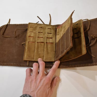 Das hier war jahrelang meine mobile Werkstatt. Keine große Kiste, sondern eine Mappe, die mit mir rumzog und jedes Projekt möglich gemacht hat. Alles drin angefangen bei meinen Punzen für Leder über Schere, Tina-Messer, Hammer, Reibeholz, Falzbein, Raspel, Zirkel, Lineal, Ahlen, Nagelort, Nadeln.