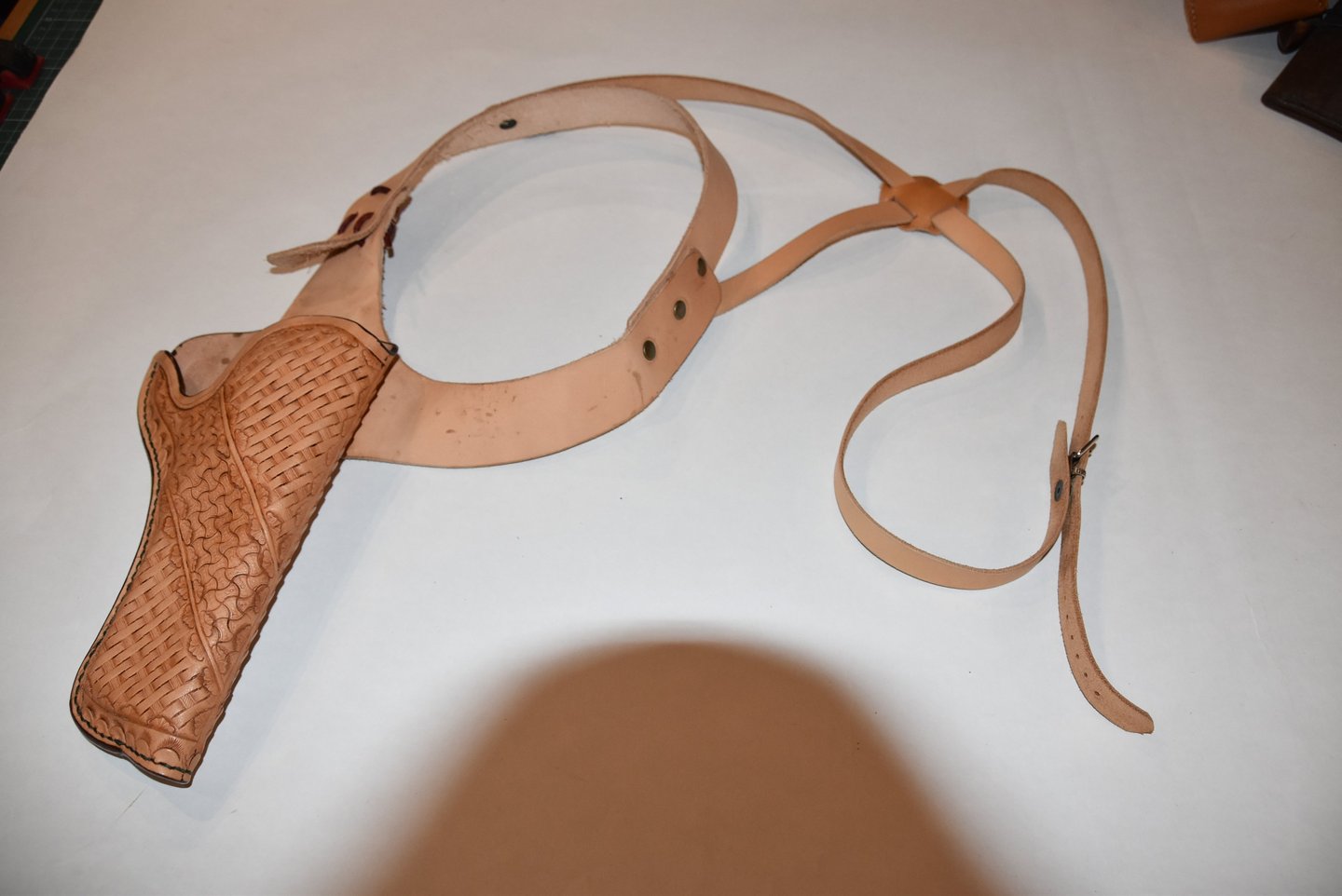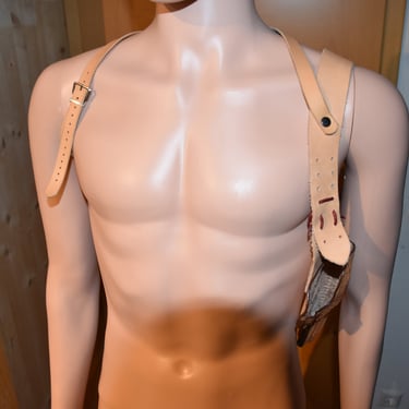 Viele kennen diese Art Holster aus Film und Fernsehen. Trotzdem hat sie ihre Daseinsberechtigung, besonders im Personenschutz und überall dort, wo eine Waffe getragen werden muss, die nicht sofort ins Auge springen soll. Diese Variante ist sinnvoll für Personenschützer, Sicherheitskräfte oder Privatpersonen mit berechtigtem Bedarf an verdecktem Tragen. Es kann auch für Airsoft oder Paintball genutzt werden wobei das stark auf euer Setup ankommt. Das hier gezeigte Achselholster wurde für eine HDR50 gefertigt und wurde auf dem Feld vom Kunden selbst getestet und als Brauchbar bewertet. Durch den verstellbaren Schulterring passt diese Holstervariante den meisten Menschen, selbst mit extrem großem oder kleinem Oberkörper. Es wurde kein wert auf Optik gelegt und das Holster wurde nur zu Testzwecken Punziert.